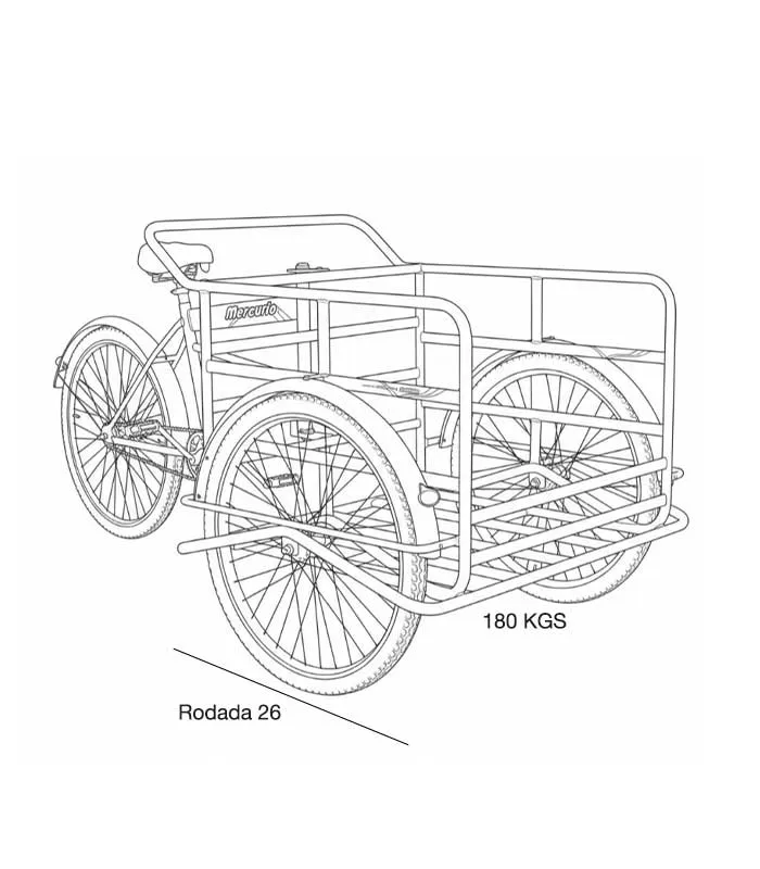 El Triciclo de Carga R-26 Extra Largo Reforzado es la herramienta de trabajo definitiva, diseñada para la durabilidad y la funcionalidad. Su estructura robusta y componentes reforzados le permiten transportar con estabilidad y seguridad hasta 180 kg de carga.